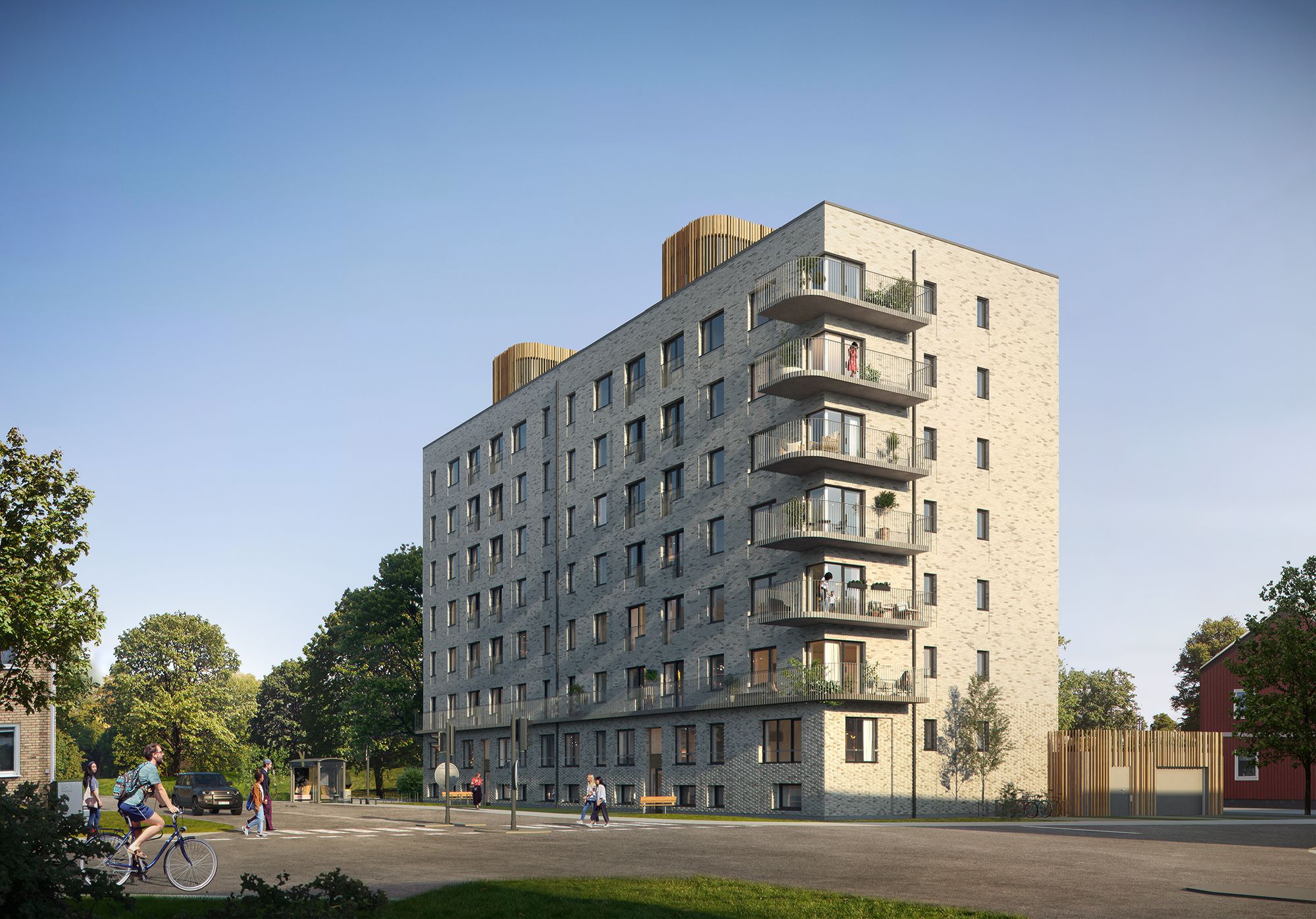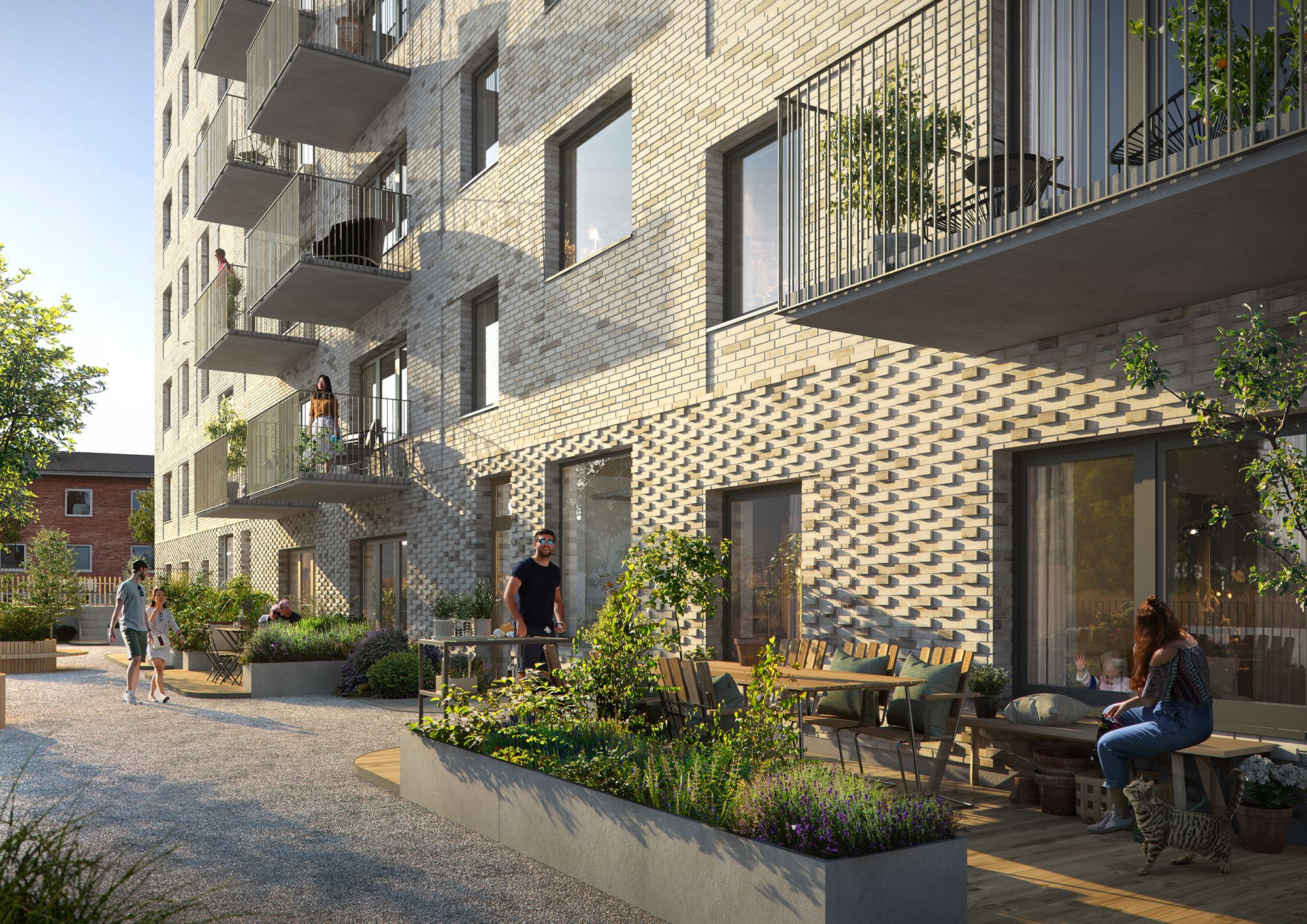 “Ambitionen har varit att skapa ett kvarter som känns både tidlöst och levande, där robusta material möter ljusa bostäder och gemensamma platser får en självklar roll i vardagen”, berättar Eva Martini, arkitekt på Semrén & Månsson.
